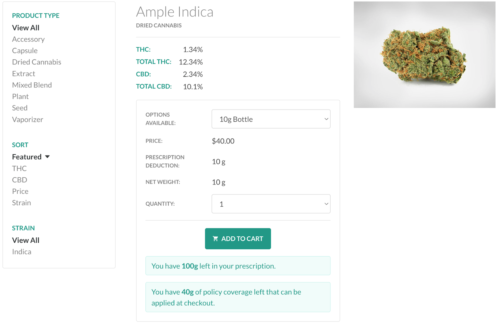 The prescription amount and policy coverage remaining are displayed on the Product view. The amounts available are adjusted as the product quantity is updated.
