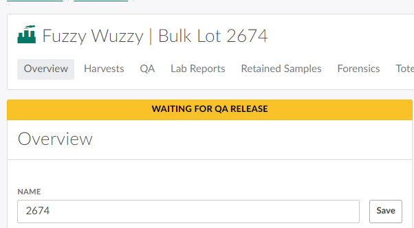 - Bulk Lot Name: The “Name” of the Bulk Lot must match the Lot number of the barcode.