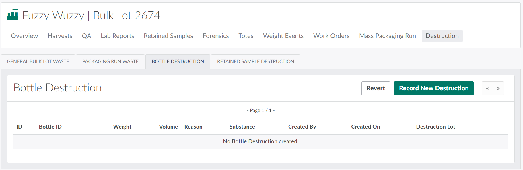Users can also destroy units on the Bulk Lot’s Destruction tab.