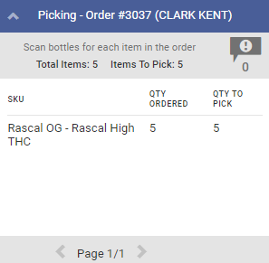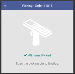 Once all items have been scanned the user will be notified the order has been successfully picked.