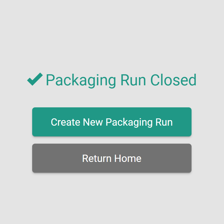 Once a Packaging Associate completes a Packaging Run, the associate should close the run. Closing a Packaging Run marks the run as complete, and ensures that no further units are added to the run. Packaging Runs must be closed before the units can be Released for sale.