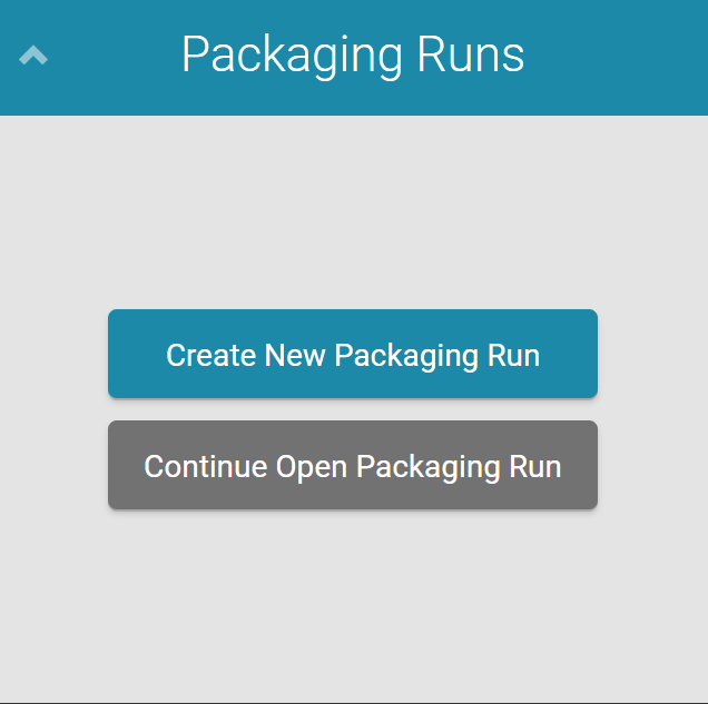 In the Packaging Runs module, select Continue Open Packaging Run.