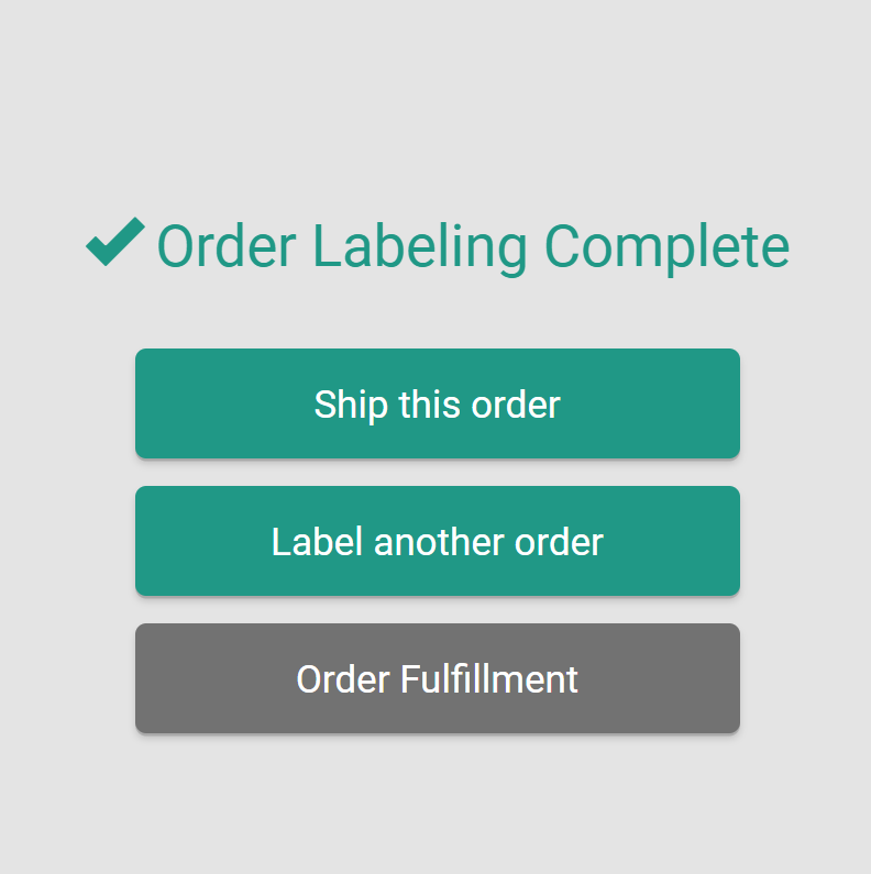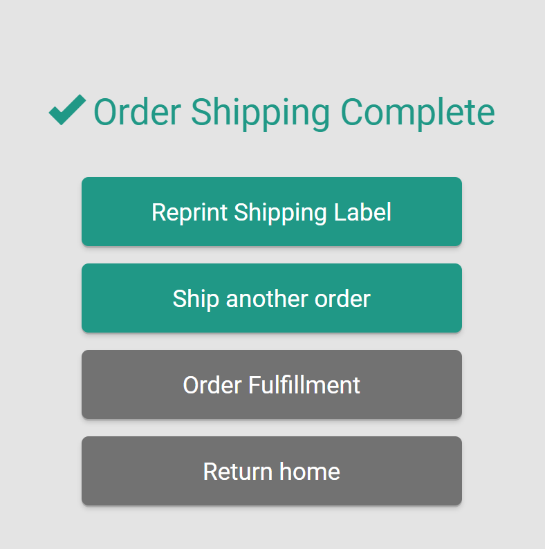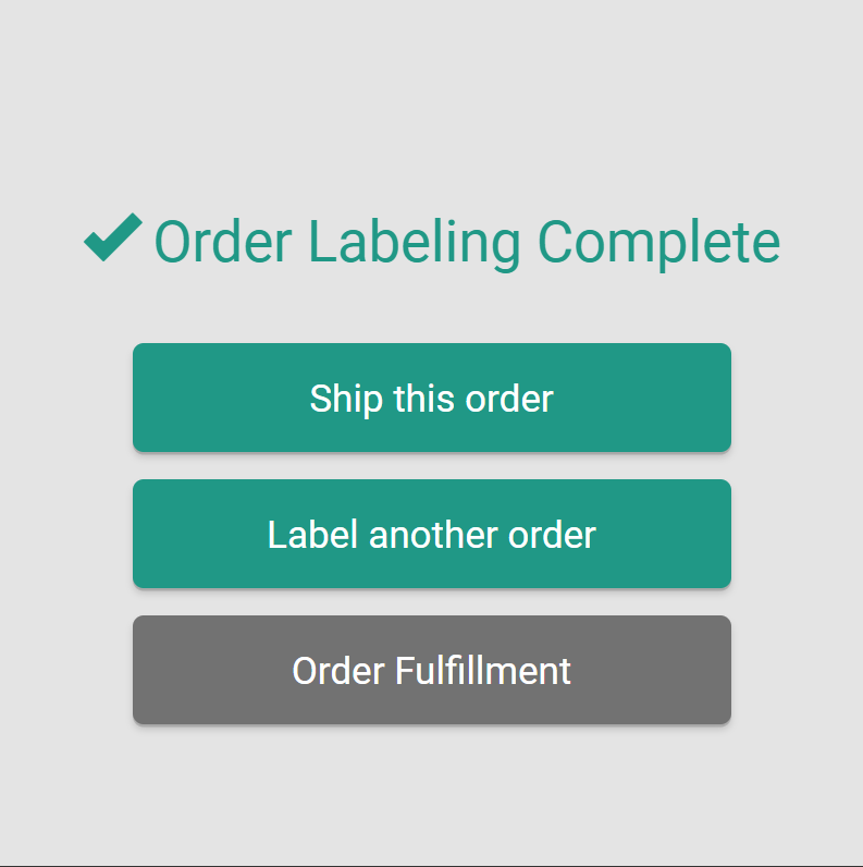 Tap Print Shipping Label to print the order's shipping label, and immediately affix it to the shipping container. This concludes the order fulfillment process, and the order is now ready for shipping.