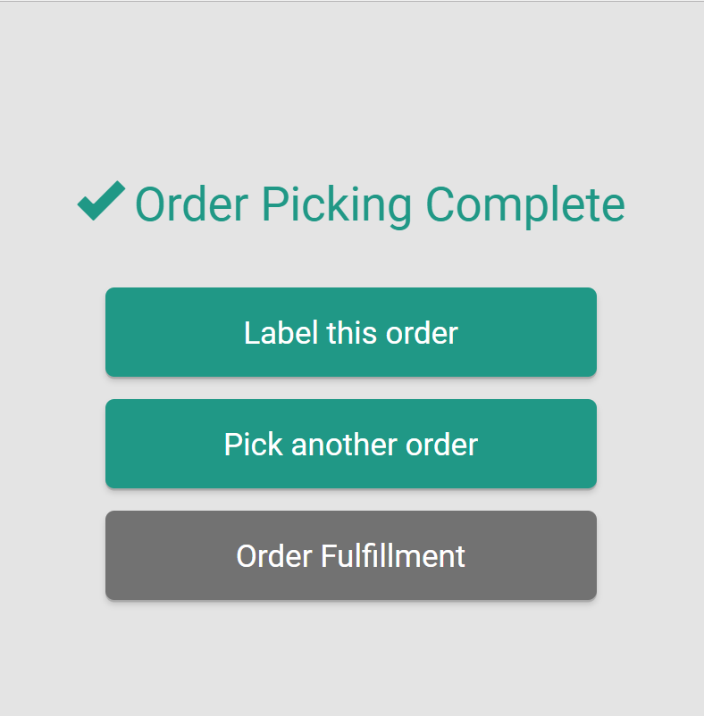 Repeat step 4 for every item in the order. Once the Fulfillment Associate has picked and labeled all the order items, the Scanner Gun will display a screen indicating that all items have been picked.