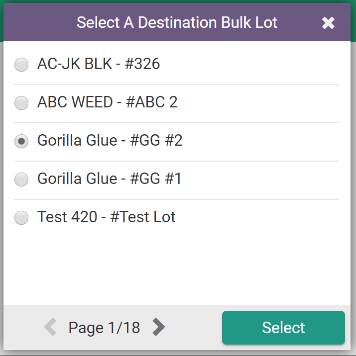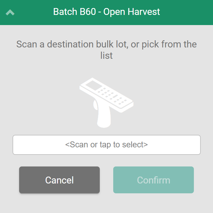 Select a destination Bulk Lot, either by scanning its barcode or by tapping the empty field and selecting a Bulk Lot from the list. Please note that only Fresh Bulk Lots will appear in this list.