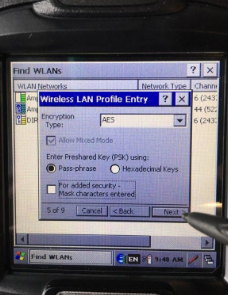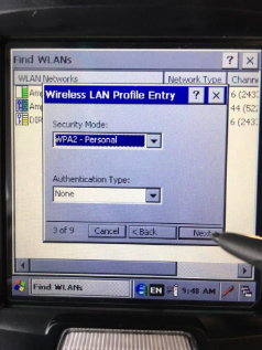Tap the stylus icon and select XAMLIM to bring up the keyboard. Enter the password for the selected wireless network.