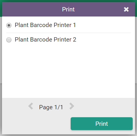 If the facility has multiple plant barcode printers, select a printer.