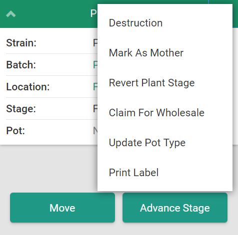 A Grow Technician can also print a plant label from the Grow Module.