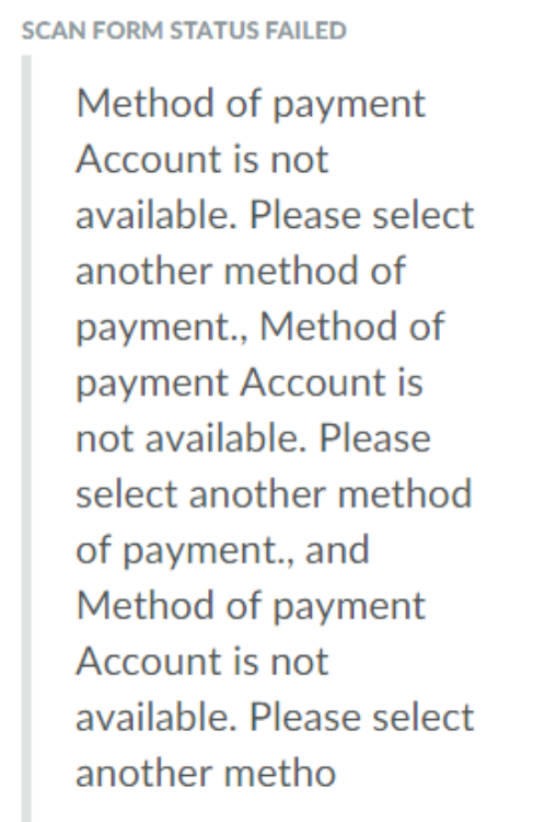 If the following error appears when adding Canada Post orders, it is due to an outstanding Canada Post bill.